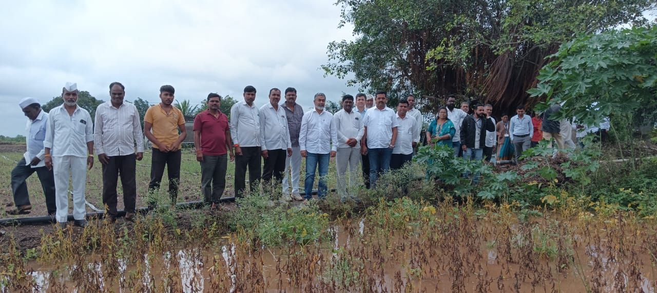 कैलास सोनवणे (दिघवद पत्रकार): चांदवड तालुक्यात दोन ते तिन दिवसांत अतिवृष्टीमुळे पिकांचे नुकसान झाल्याने प्रशासकिय अधिकारी व कर्मचाऱ्यांच्या उपस्थित पाहाणी करण्यात आली यावेळी दिघवद हिवरखेडे दहिवद वाळकेवाडी आदि गावातील परिसराची पाहणी करण्यासाठी चांदवड तहसीलदार मंदार कुलकर्णी गट विकास अधिकारी मच्छिंद्र साबळे कूषीआधिकारी निलेश मावळे हे उपस्थित होते यावेळी शेतकर्यांनी विविध ठिकाणी सोयाबिन कांदा मका. टोमॅटो भाजिपाला व कांदा रोपे लागवडीसाठी आलेले पाण्यामुळे खराब होणारे व सोयाबीन पाण्यात कुजलेल्या अवस्थेत पाहाणी करुन संबंधित अधिकाऱ्यांना पंचनामे करण्याचे आदेश आमदार राहुल आहेर यांनी दिले यावेळी अध्यक्ष मनोज शिंदे डॉ नितीन गांगुर्डे योगेश ढोमशे राजेंद्र गांगुर्डे पिंटु भोयटे डॉ भावराव देवरे राजुपाटिल तळेगाव नितीन फंगाळ कूषीसाहयक सौ मिसाळ सरपंच रावसाहेब गांगुर्डे सभापती पोपटराव गांगुर्डे नारायण गांगुर्डे राजेंद्र मापारी पत्रकार विजय काळे गंगाधर गांगुर्डे अमर मापारी सर्जेराव गांगुर्डे बाळासाहेब वाघमोडे साहेबराव निंबाळकर बाळासाहेब केदारे सोपान आरतनुर आपा गांगुर्डे सुनिल गांगुर्डे व विविध गावांतील शेतकरी उपस्थित होते