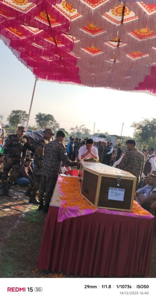 कैलास सोनवणे (दिघवद पत्रकार) वार्ताहर:-‘अमर रहै अमर रहै किशोर ठोके अमर रहै’ अशा घोषणांनी परिसर दुमदुमत तालुक्यातील पाटे येथील वीर जवान किशोर अंबादास ठोके यांच्यावर शासकिय इतमामात अत्यसंस्कार करत अखेरचा निरोप दिला.