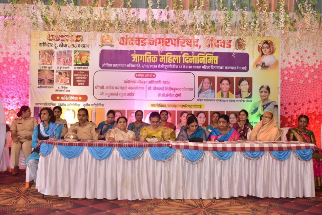 चांदवड : नगरपरिषदेच्या वतीने जागतिक महिला दिन उत्साहपूर्ण वातावरणात आणि मोठ्या थाटामाटात साजरा करण्यात आला. महिलांच्या सन्मानासाठी तसेच समाजाच्या विविध क्षेत्रांत महिलांनी केलेल्या उल्लेखनीय कार्याचा गौरव करण्याच्या उद्देशाने आयोजित या कार्यक्रमाला शहरातील महिलांचा उत्स्फूर्त प्रतिसाद लाभला.